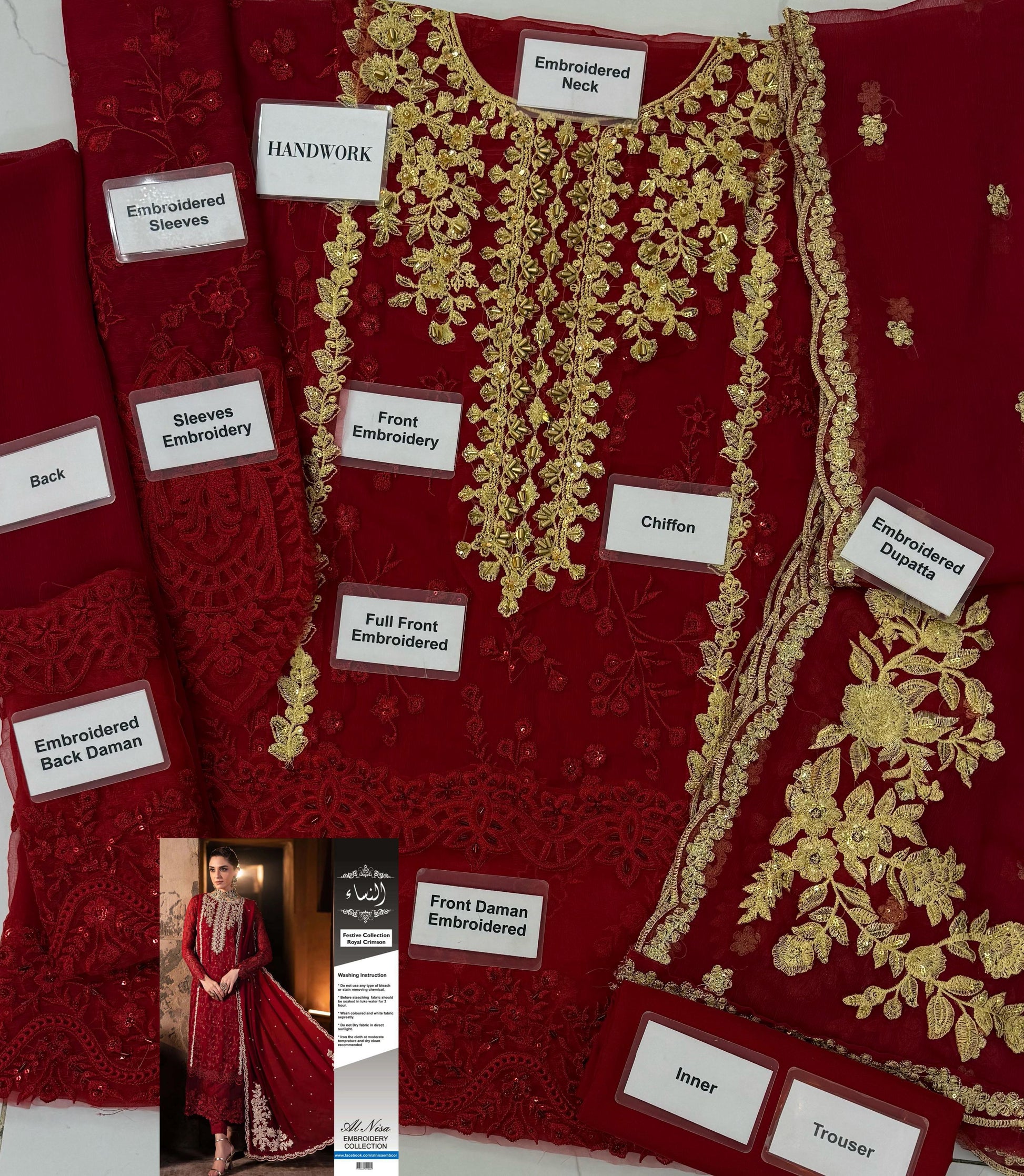 ❤️ Royal Crimson Chiffon Embroidered Ensemble – AL-Nissa