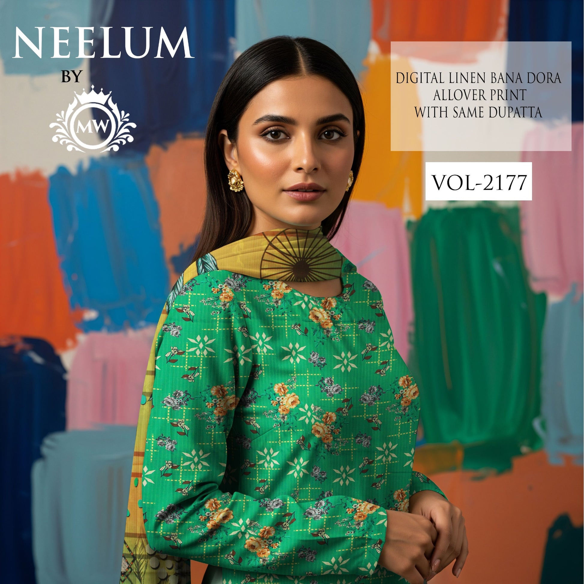 Bana Dora Allover BDA-01 – Digital Print Linen Suit 3 PC | Veloria Fabrics
